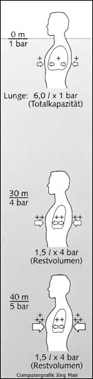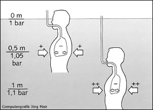 Versucht man mit angehaltenem Atem größere Wassertiefen zu erreichen, so muss an einen regelmäßigen Druckausgleich in beiden Mittelohren und in der Tauchmaske gedacht werden.