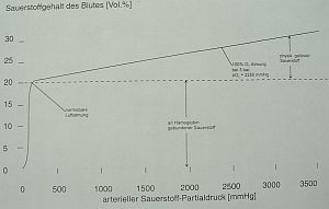 Bei Atmung von Luft unter normalem Umgebungsdruck (1 bar) werden rund 97 Prozent des Sauerstoffs im Blut an Hämoglobin gebunden transportiert. Nur 0,3 ml Sauerstoff sind pro Deziliter Blut physikalisch im Plasma gelöst. Da der chemisch an Hämoglobin gebundene Anteil nicht weiter gesteigert werden kann, wird durch die Atmung von 100% Sauerstoff bei 1 bar der physikalisch gelöste Anteil des Sauerstoffs auf 2,1 ml/dl erhöht. Bei 3 bar werden 6,8 ml Sauerstoff pro dl Blut zusätzlich transportiert.